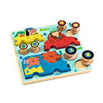 - Puzzle relief Roll color (Djeco – 18€) : Un puzzle revisité car les pièces s’assemblent et se transforment en véhicules.
