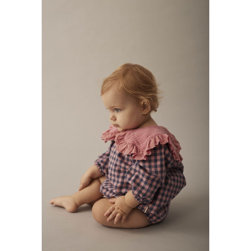 Cette jolie barboteuse Cozmo deviendra une pièce phare de la garde-robe de votre enfant cet automne. On adore son motif, le bas des manches élastiqué pour un effet bouffant et ce grand col rose en gaze de coton brodé.